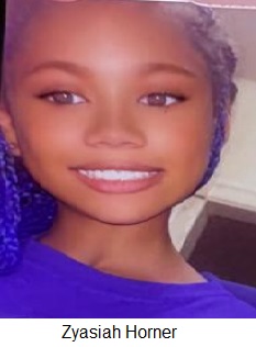 Zyasiah Horner has been reported missing from her home on the 1200 block of Chase Street. She is described as a black female, 5’5”, 110 pounds, with brown eyes and black and purple hair. She was last seen wearing jeans, a black hooded sweatshirt and black Nike Air Jordan sneakers with a turquoise logo.